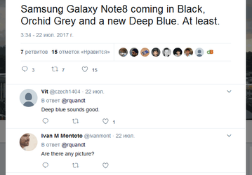 Смартфон Samsung Galaxy Note8 добавит новый цвет в палитру смартфонов Samsung