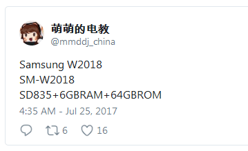 Основой Samsung SM-W2018 послужит SoC Quialcomm Snapdragon 835