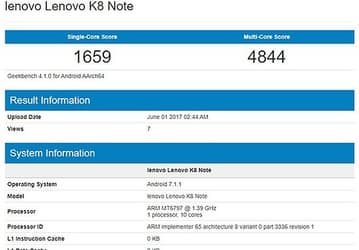 Смартфон Lenovo K8 Note оснащен SoC Helio X20 и 4 ГБ ОЗУ