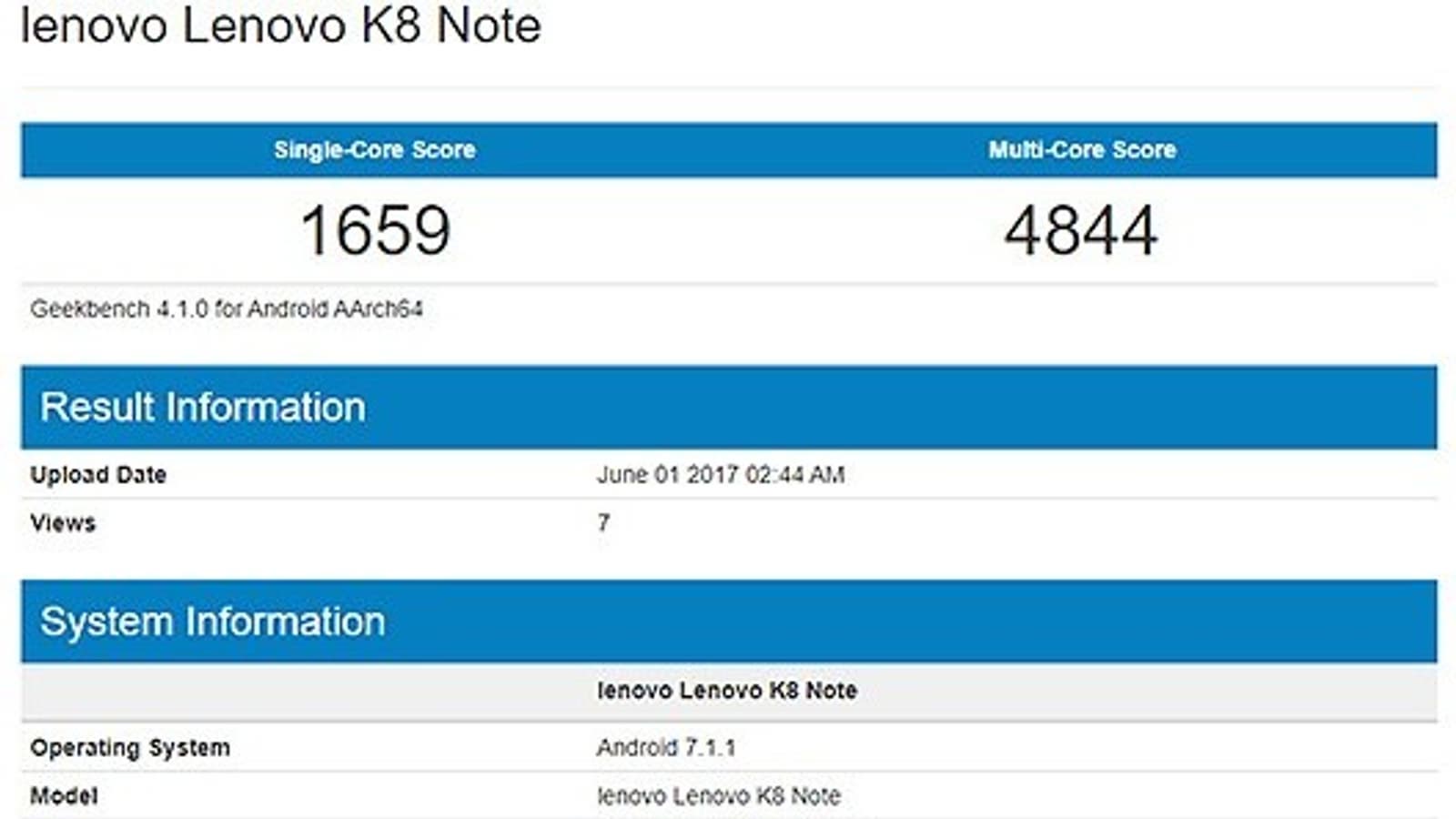 В ближайшее время компания Lenovo должна представить смартфон Lenovo K7 Note, а в это время в базе данных тестового пакета Geekbench уже появился смартфон Lenovo K8 Note.