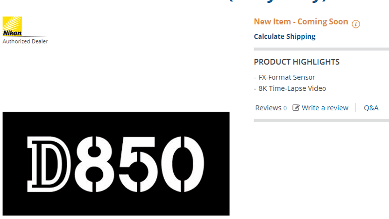 На сайте крупного магазина фототехники B&H появилась страница камеры Nikon D850. Пока там очень мало информации, но уже указано, что камера формата FX (так Nikon называет полнокадровые камеры) позволит делать видеоролики разрешением 8К из снимков, полученных с помощью интервальной съемки.