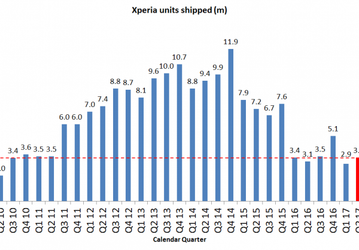 График наглядно демонстрирует, насколько снизились продажи смартфонов Sony за последние годы