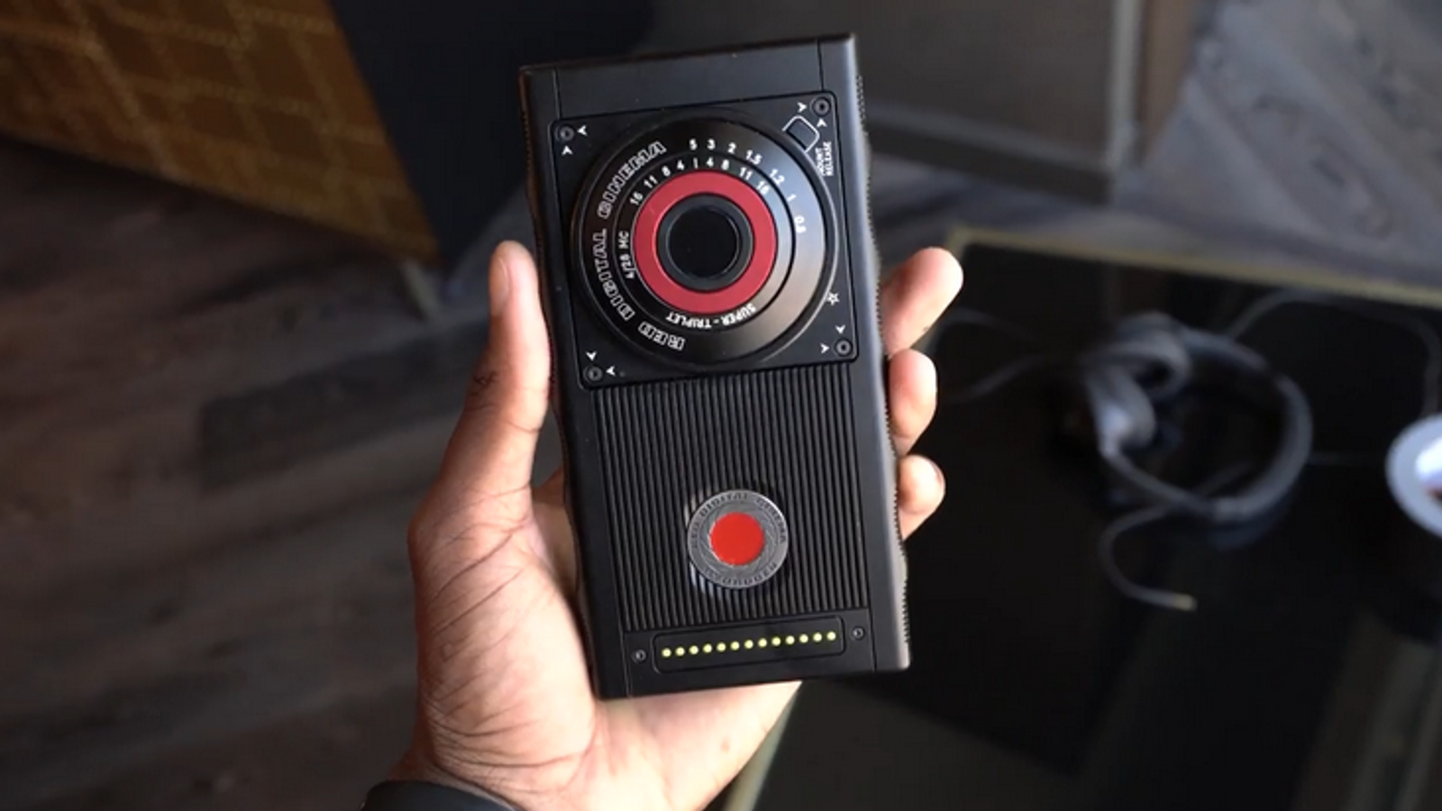 Также на видео можно видеть ещё один прототип, судя по всему, с подключённым модулем, если это можно так назвать. Он превращает смартфон в ещё более громоздкий аппарат, но предоставляет (в теории) качественную камеру.