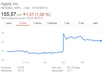 Акции Apple подскочили до рекордного значения после публикации квартального отчета