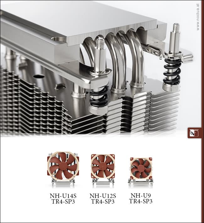 Компания Noctua представила три модели систем охлаждения для процессоров, устанавливаемых в разъемы TR4 и SP3, то есть для процессоров AMD Ryzen Threadripper и Epyc. По сути, это разновидности уже известных моделей NH-U14S, NH-U12S и NH-U9. От базовых моделей они отличаются увеличенной площадью поверхности, контактирующей с процессором и креплением SecuFirm2, обеспечивающей совместимость с TR4 и SP3. В комплект входят вентиляторы Noctua NF-A15, NF-F12 и NF-A9 типоразмера 140, 120 и 92 мм соответственно (в последнем случае покупатель получает два вентилятора), а также порция термопасты NT-H1.