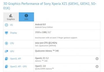 Sony Xperia XZ1 с Android 8.0 протестирован в GFXBench