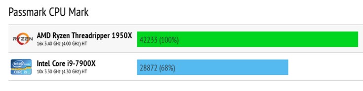 Как известно, флагманский 16-ядерный процессор семейства Ryzen Threadripper, модель Ryzen Threadripper 1950X, оценивается в 1000 долларов. Intel же за эти деньги предлагает лишь 10-ядерную модель Core i9-7900X.