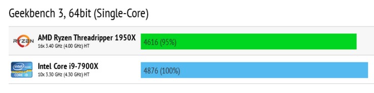 Правда, если посмотреть на диаграммы, соответствующие однопоточным тестам, то окажется, что CPU Intel даже немного быстрее. Преимущество не особо существенное, но оно есть. Обусловлено оно архитектурой или большей частотой, не так важно.