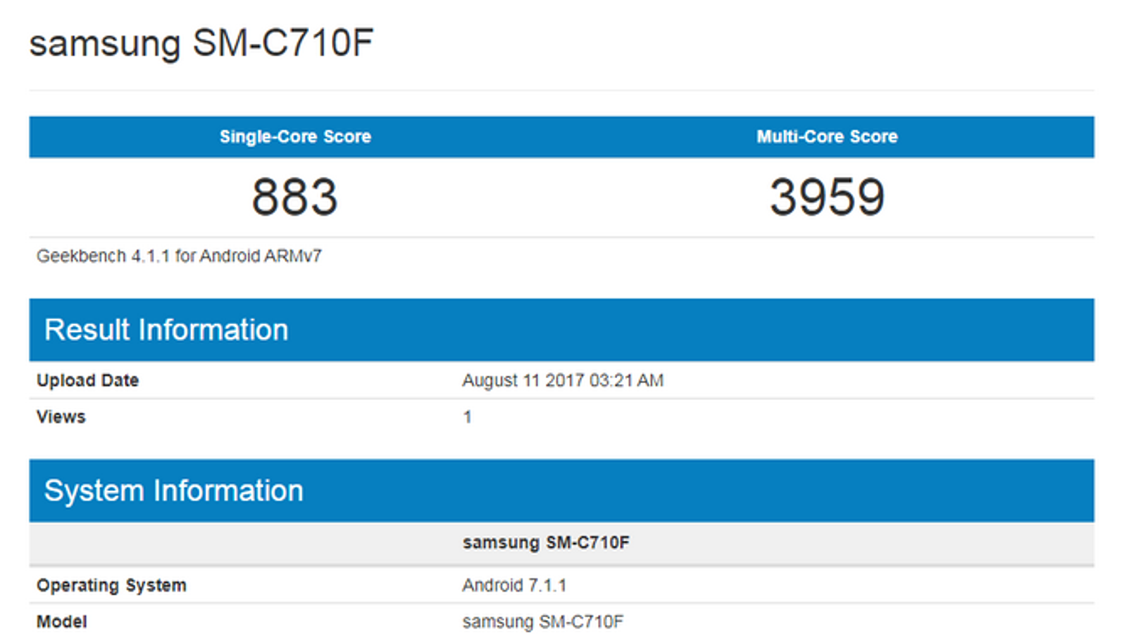В базе данных Geekbench появился результат тестирования смартфона Samsung Galaxy C7 нового поколения. Об этом позволяет судить однокристальная система MediaTek Helio P20.