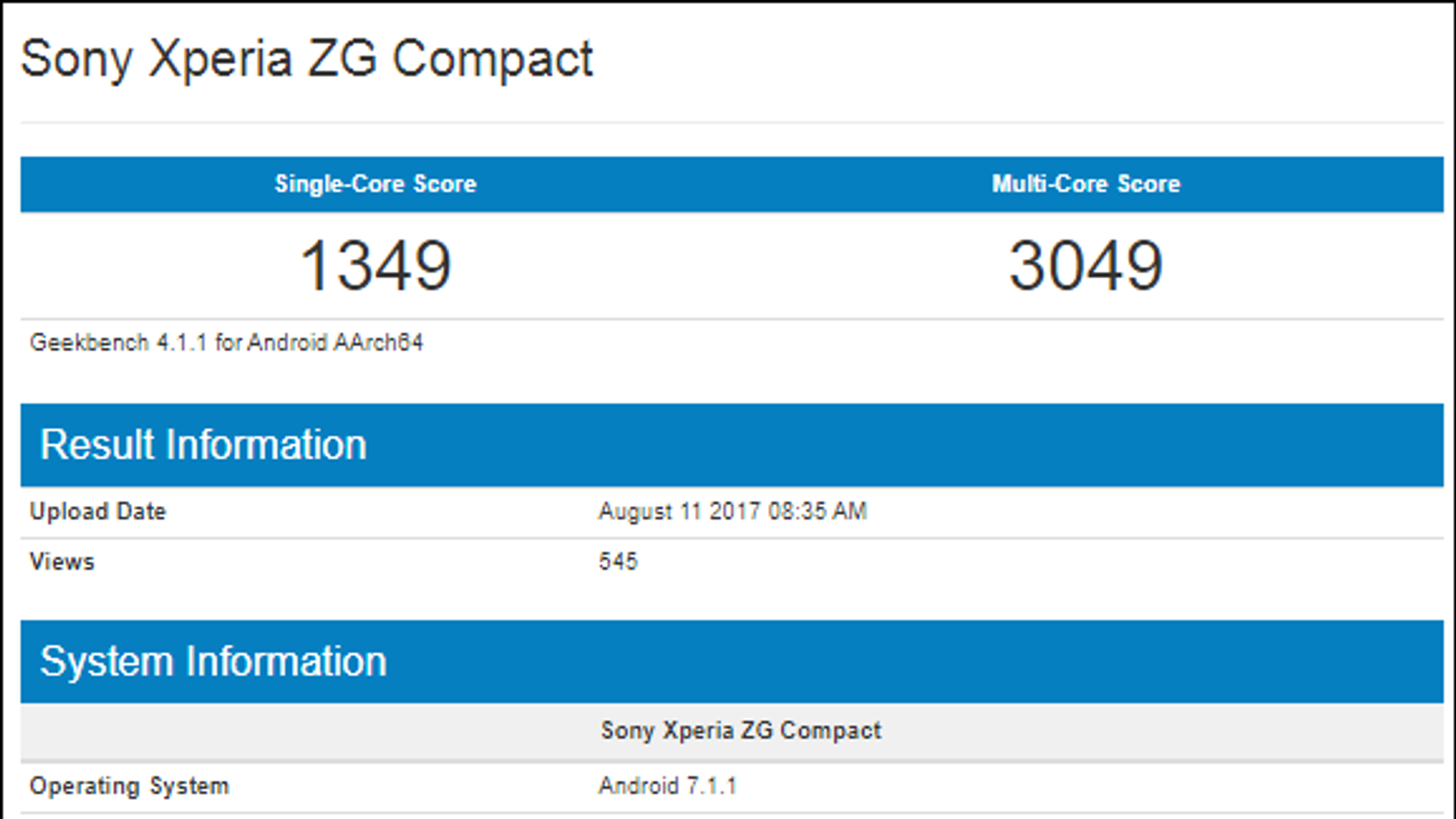 Теперь же в Geekbench был замечен еще один смартфон под названием Sony Xperia ZG Compact, о котором раньше не говорили. Возможно, это чья-то шутка или же в Geekbench допущена ошибка, потому как устройство оснащено довольно старой на сегодня однокристальной системой Qualcomm Snapdragon 810. Она же была установлена в Sony Xperia Z5 Compact, который был выпущен в 2015 году.