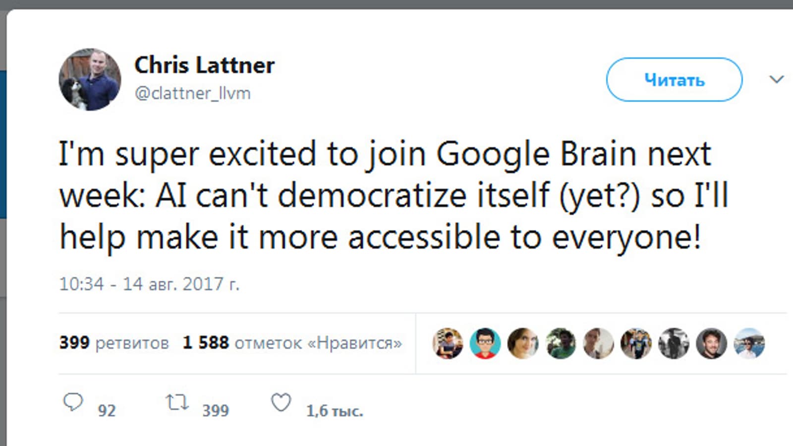 По данным одного из источников, задачей Латтнера станет развитие программной библиотеки TensorFlow, предназначенной для машинного обучения.
