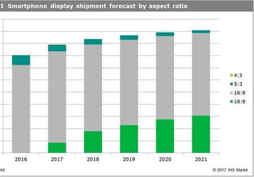 В 2021 году экраны с соотношением сторон 18:9 займут примерно 30% рынка дисплеев для смартфонов