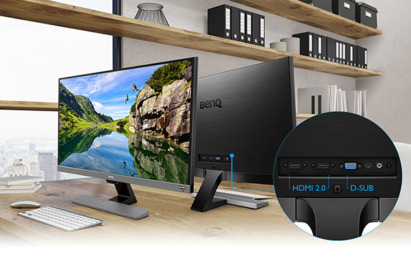 BenQ EW277HDR наделен встроенными стереофоническими громкоговорителями, но подставка не трансформируемая (можно менять только угол наклона в диапазоне от -5 до 15°), а набор видеовыходов выглядит странно: компанию двум HDMI 2.0 составляет D-Sub, но ни DVI, ни DisplayPort нет.