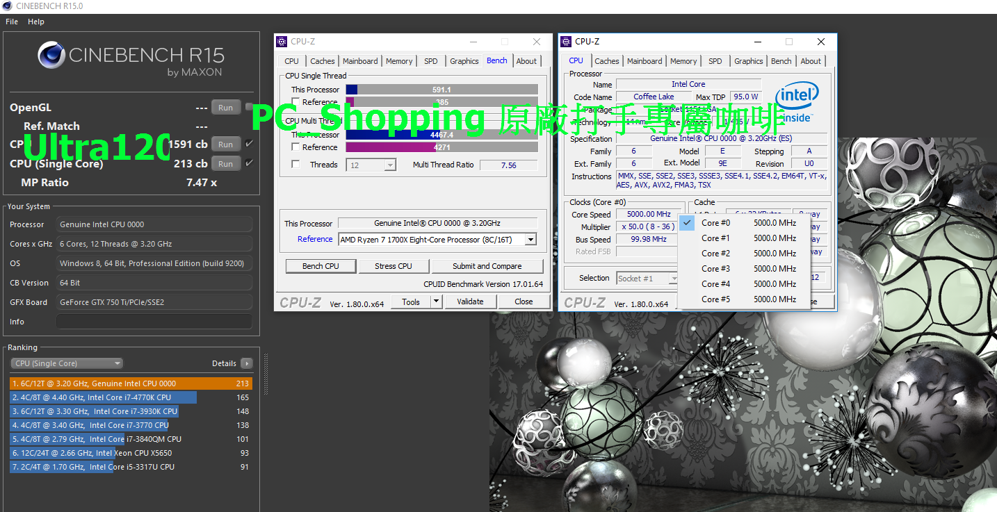 Как можно видеть на скриншотах, его удалось разогнать до 5 ГГц при поднятии напряжения до 1,4 В. Каким образом было реализовано охлаждение, пока неизвестно, но, учитывая результат, речь явно о воздушной либо жидкостной СО.