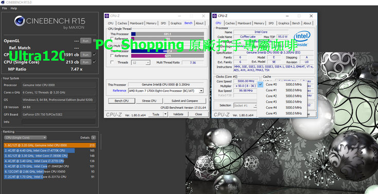 На этой частоте процессор продемонстрировал результат в 591/4467 баллов в CPU-Z и 213/1591 балл в Cinebench R15, что примерно сопоставимо с результатами неразогнанного Ryzen 7 1700X.