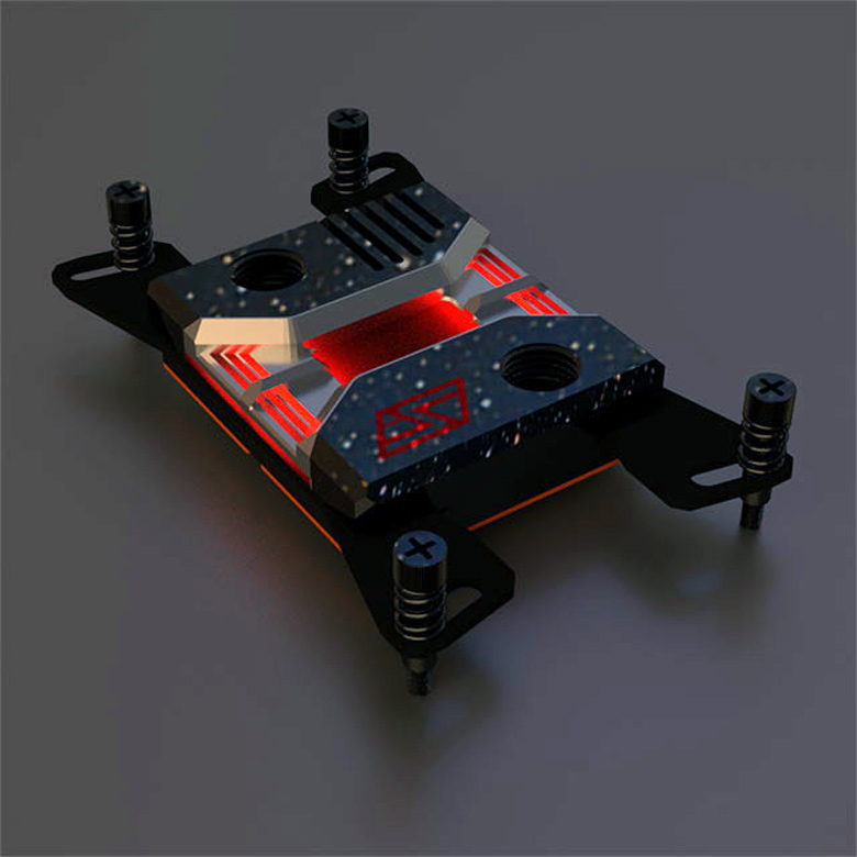 По сравнению с базовой моделью водоблок Apogee SKF-TR4 увеличен, чтобы контактировать со всей крышкой-теплораспределителем процессора. Водоблок изготовлен из меди. В месте, где основание прилагает к процессору, внутренняя поверхность водоблока покрыта микроканалами, увеличивающими площадь, участвующую в теплообмене, на 30%. Кроме того, входное и выходное отверстия расположены напротив активных кристаллов в многокристальном модуле Threadripper. Крепления водоблока совместимы только с системными платами с процессорными разъемами TR4 (SP3r2). Новинка стоит примерно 108 долларов.