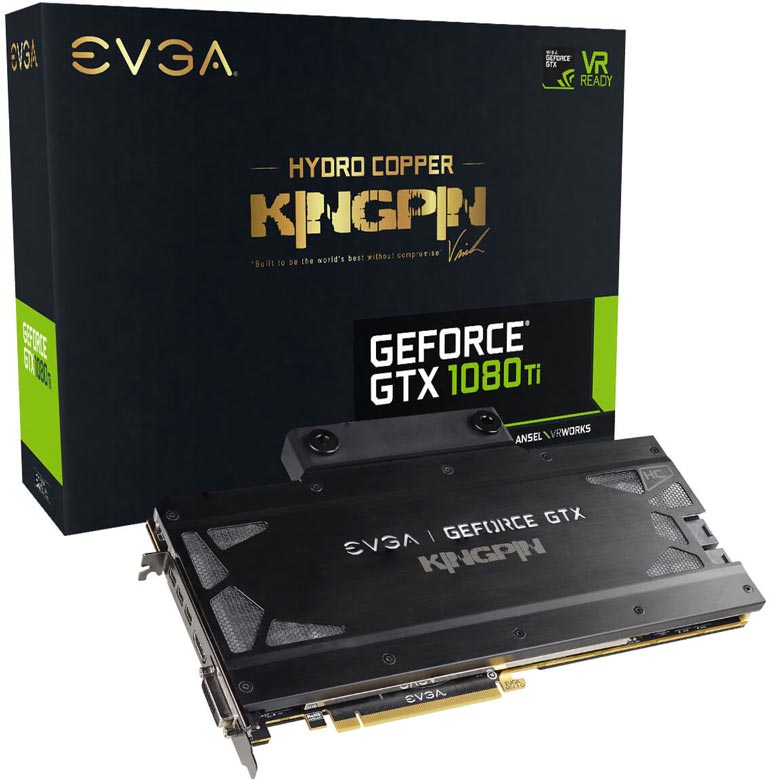 Компания EVGA выпустила 3D-карту GeForce GTX 1080 Ti K|ngp|n Hydro Copper (11G-P4-6799), разогнанную в заводских условиях. Чтобы гарантировать устойчивую работу на повышенных частотах, производитель использует отборные GPU GP102 и микросхемы памяти GDDR5X, а для отвода тепла на карте установлен водоблок.