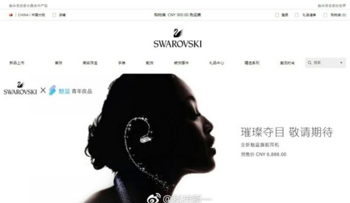 В Сети появилось изображение новой гарнитуры Meizu, которая будет выпущена под брендом Blue Charm при участии известной компании Swarovski.