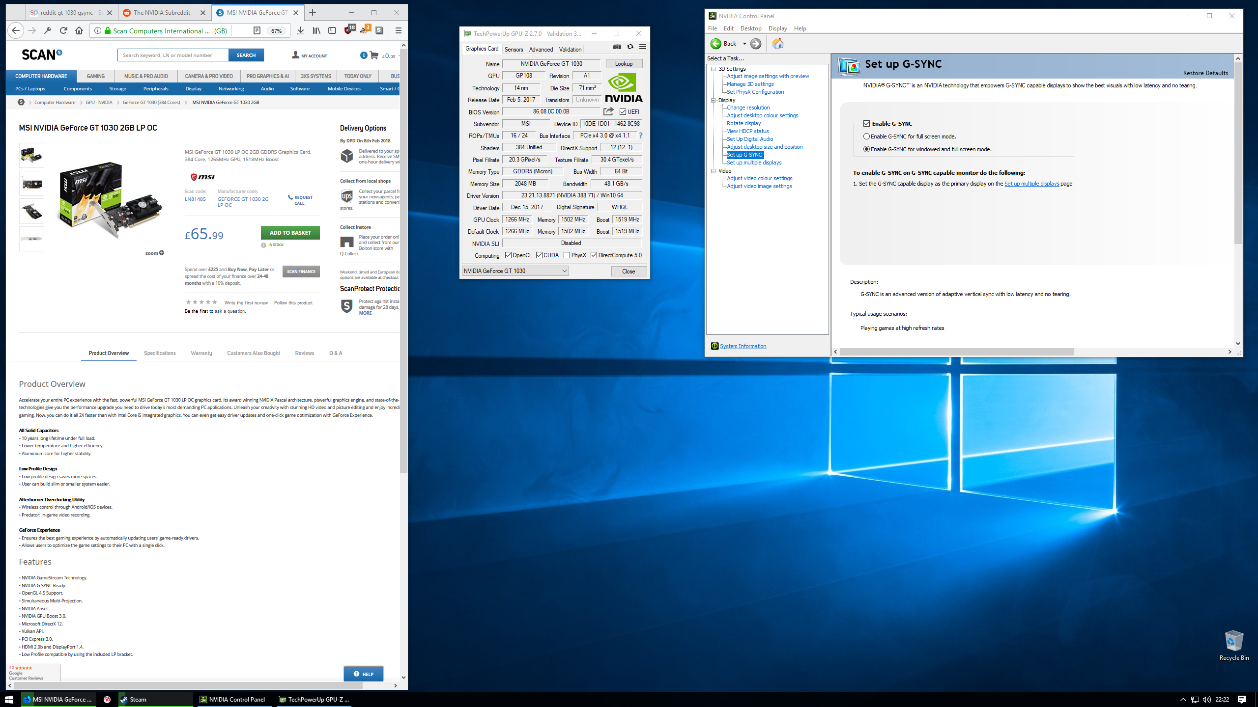 Понятно, что дело исключительно в искусственном ограничении, но мало кто будет покупать такую карту совместно с достаточно дорогим игровым монитором, поддерживающим G-Sync. Но такие люди всё же имеются. И один из них утверждает, что на GT 1030 технология G-Sync прекрасно работает.