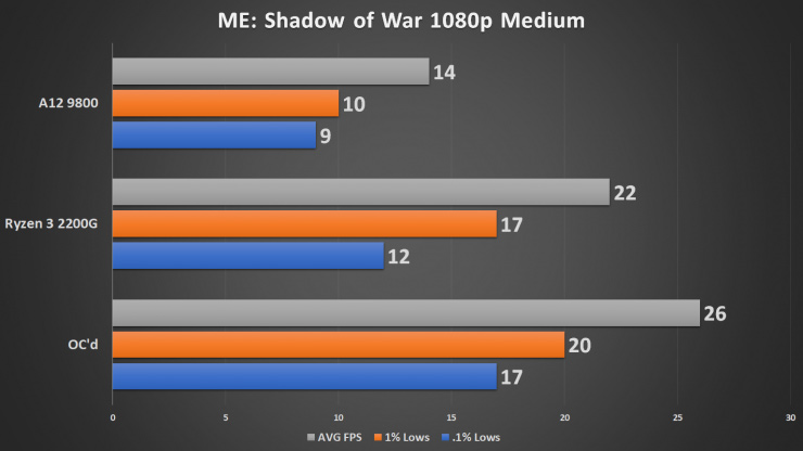 На этой неделе был представлен APU AMD Ryzen 3 2200G с интегрированным GPU Vega 8. Четырехъядерный CPU этого гибридного процессора штатно работает на базовой частоте 3500 МГц. Повышенная частота равна 3700 МГц. Графический процессор работает на частоте 1100 МГц. Наши коллеги подняли его частоту до 1600 МГц и протестировали APU в тестах и играх. Для сравнения та же система была протестирована в конфигурации с APU AMD A12-9800.