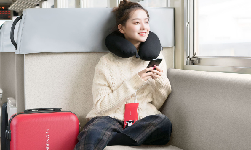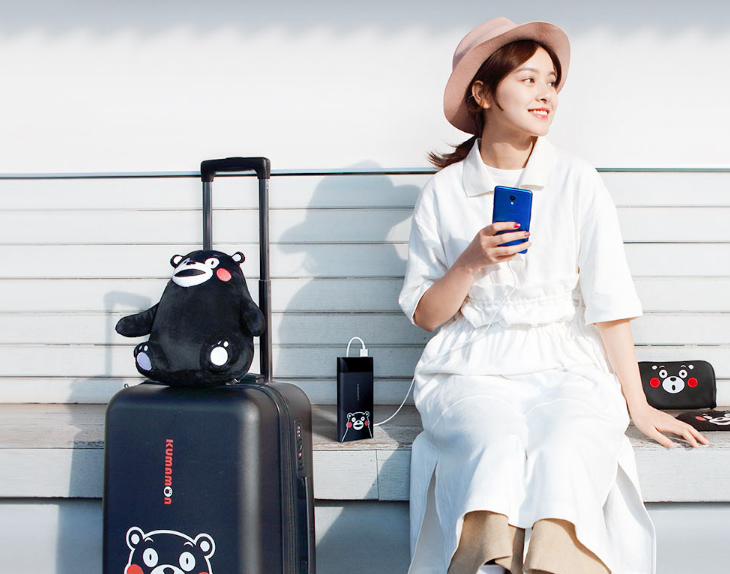 В него входит чемодан, внешний акумулятор Meizu M20 ёмкостью 10 000 мА·ч, маска для сна, подушка для поддержки головы, кошелёк и игрушка того самого персонажа Kumamon.
