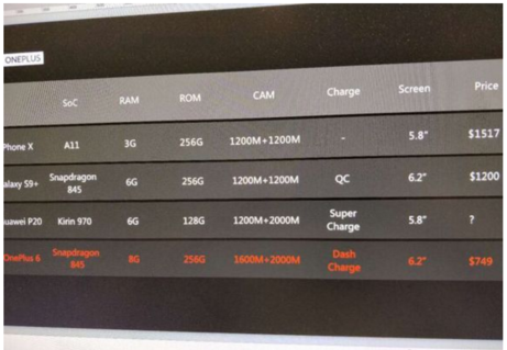 О смартфоне OnePlus 6 мы знаем уже достаточно много. Аппарат должен получить SoC Snapdragon 845, 6 либо 8 ГБ оперативной памяти и дисплей диагональю 6,28 дюйма разрешением 2280 х 1080 пикселей.