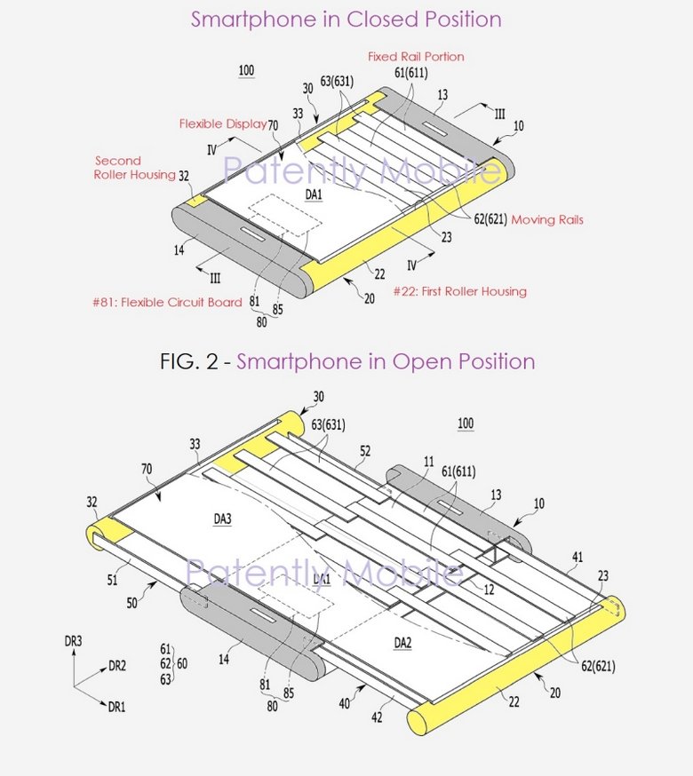 Последние пару лет постоянно появляется информация о патентах различных производителей, в которых описываются смартфоны со сгибающимися дисплеями. Обычно они имеют форм-фактор раскладушки, а дисплей может либо прятаться в сложенном состоянии либо огибать устройство с обеих сторон.