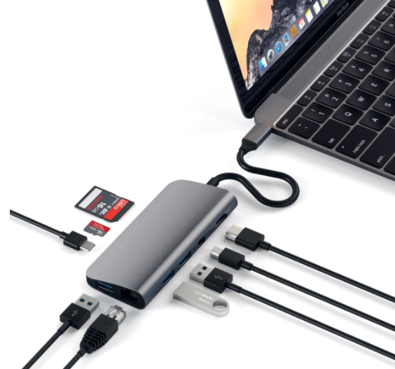 Компания Satechi представила очередной адаптер, который пригодится в первую очередь владельцам новых ноутбуков Apple. Модель Aluminum Type-C Multimedia Adapter позволяет при подключении к единственному порту USB-C получить сразу девять разъёмов.
