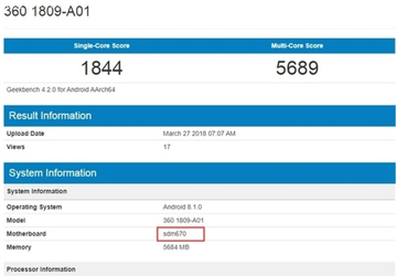 Новый смартфон 360 Mobiles оснащен SoC Snapdragon 670
