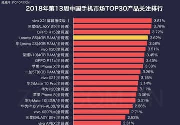 Источники опубликовали рейтинга самых популярных смартфонов в Китае (Top 30 Product Rankings for China Mobile Phone Market) на прошлой неделе.