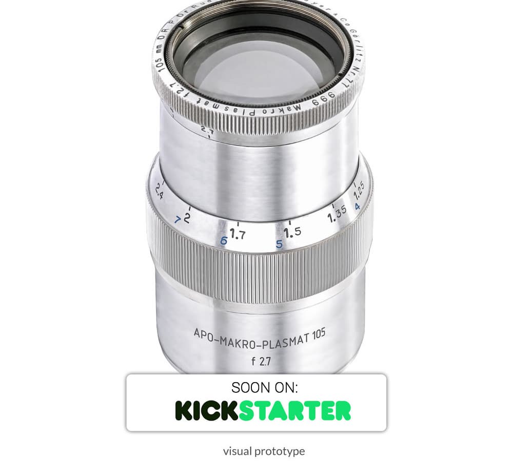 На сайте компании Meyer Optik Görlitz появилась информация о следующем объективе, сбор средств на выпуск которого производитель планирует начать в ближайшее время. Это модель APO-Makro-Plasmat 105 f/2.7, которая будет выпускаться в вариантах с креплениями Fuji G, Hasselblad X1D, Canon, Fuji X, Leica M, Nikon и Sony E.