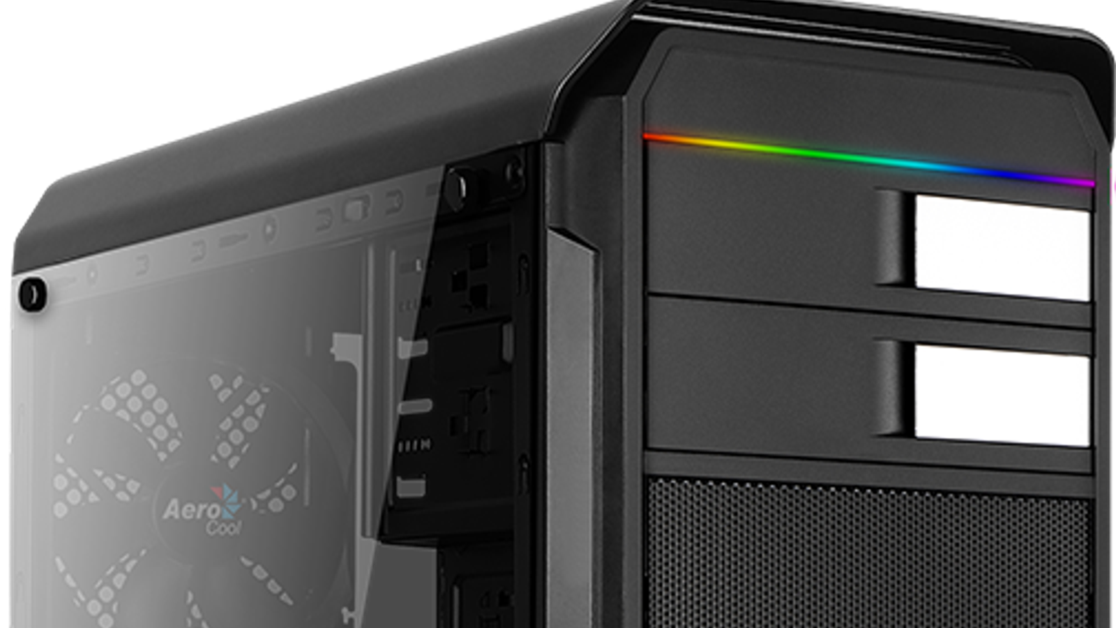 Компания AeroCool Advanced Technologies (AAT) представила корпус для ПК Aero-500G RGB. В описании новинки производитель выделяет переднюю панель со «сдвоенной светодиодной подсветкой». В верхней и нижней части панели проложены полноцветные светодиодные ленты.