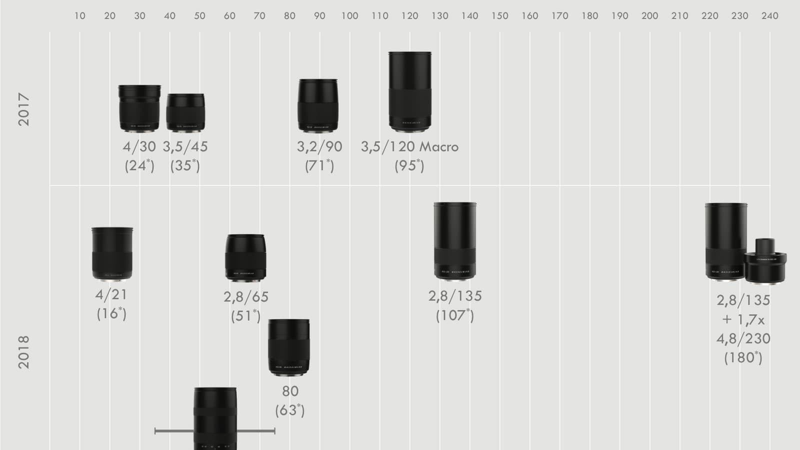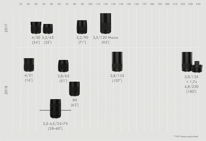 В июне 2016 года была представлена камера Hasselblad X1D — первая компактная беззеркальная камера среднего формата. Она рассчитана на объективы новой серии XCD с центральным затвором. Одновременно с камерой производитель представил первые объективы — XCD 45mm F3.5 и XCD 90mm F3.2 с фокусным расстоянием 45 мм и 90 мм соответственно. Позже к ним добавились другие, так что вместе с моделями, включенными в план выпуска, опубликованный осенью прошлого года, общее число достигло девяти.