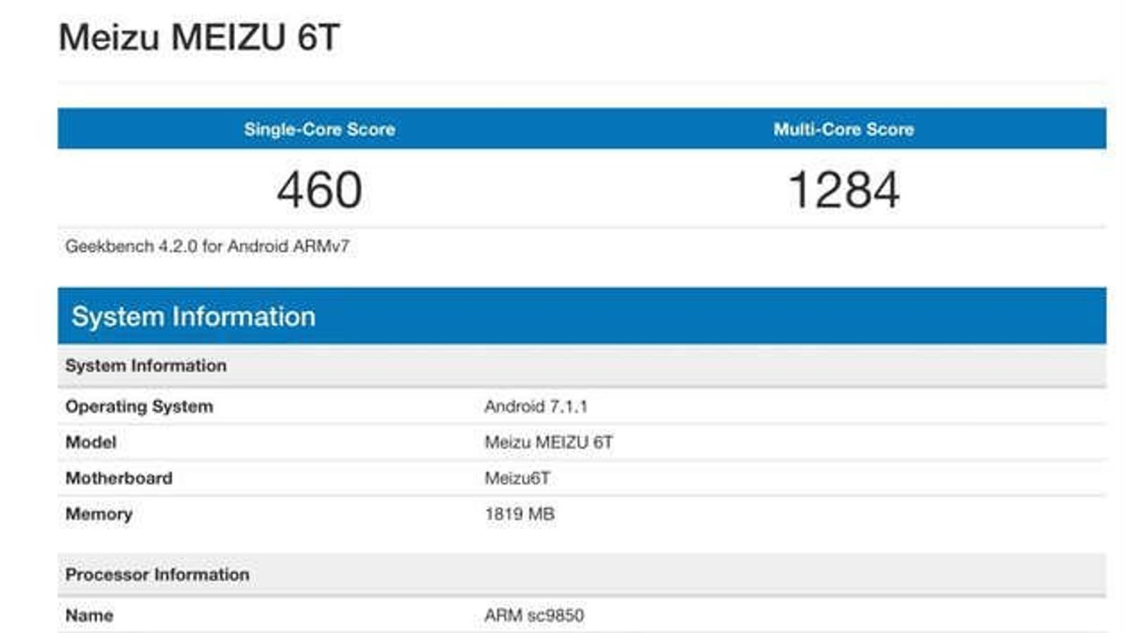 Несколько дней тому назад в Сети появились слухи о том, что компания Meizu представит 29 мая смартфон M6T. А сейчас источнику удалось подметить эту модель в базе данных бенчмарка Geekbench.