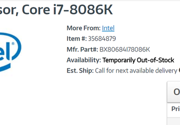 Юбилейный процессор Intel Core i7-8086K замечен в онлайновых магазинах