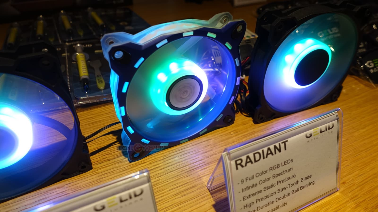 На выставку Computex 2018 компания GELID привезла корпусные вентиляторы Radiant и Radiant D. Эти вентиляторы типоразмера 120 мм получили новую форму крыльчатки с пилообразным контуром рабочего края. По словам производителя, такая форма позволяет уменьшить шум, создаваемый при вращении крыльчатки.