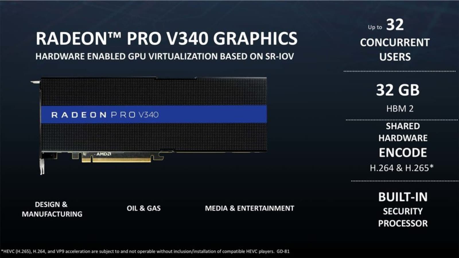 А первым графическим решением на основе нового GPU может стать модель Radeon PRO V340. Слайды, попавшие сегодня в Сеть, указывают на то, что данный адаптер располагает 32 ГБ памяти HBM2 и ориентирован на системы виртуализации с поддержкой до 32 пользователей.