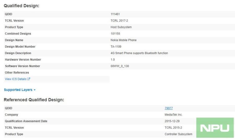 Смартфон Nokia с номером модели TA-1109, который в апреле получил сертификат CCC в Китае, прошел сертификацию Bluetooth. Подробностей об устройстве все еще мало, но теперь стало известно, что он построен на платформе Mediatek.