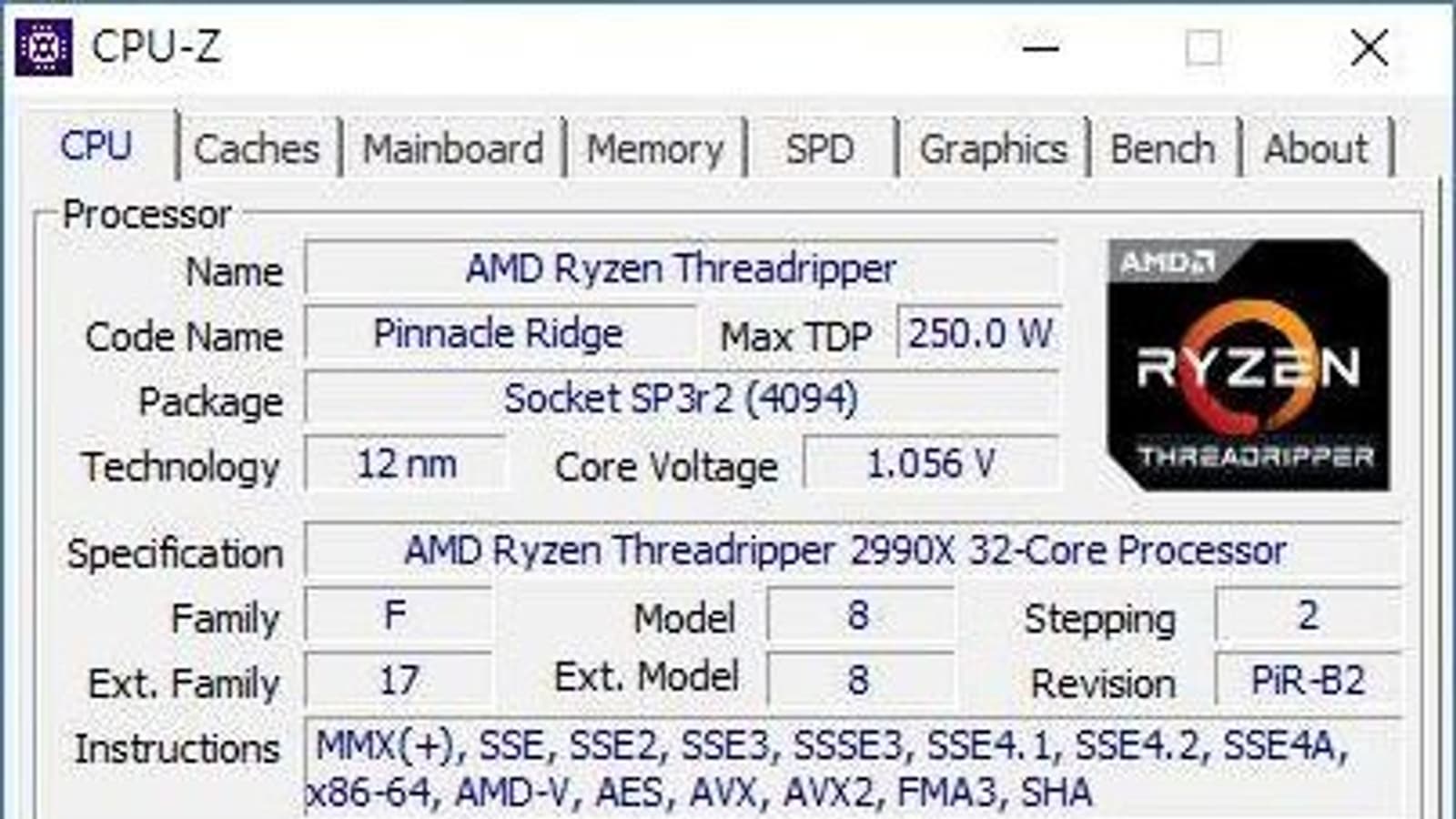 В распоряжении источника оказались подробности о флагманском процессоре AMD HEDT нового поколения. Ryzen Threadripper 2990X, именно так определяется утилитами модель, предложит внушительную обойму физических ядер в количестве 32 штук и 64 потока. При этом тактовая частота CPU, если опираться на скриншот CPU-Z, указана частота 3,4 ГГц, а объемы кэш-памяти первого, второго и третьего уровней – 3, 16 и 64 МБ соответственно.