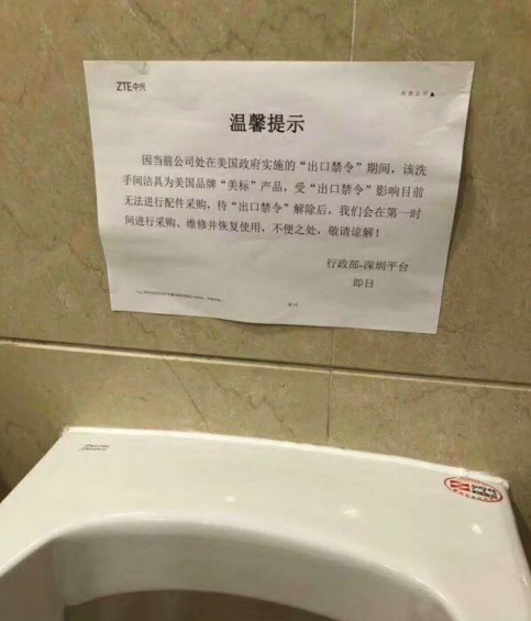 В туалете офиса китайского гиганта в Шэньчжэне уже какое-то время не могут починить сломанный писсуар. Причина — он произведён американской компанией American Standard, а санкции делают невозможным заказ запчастей.