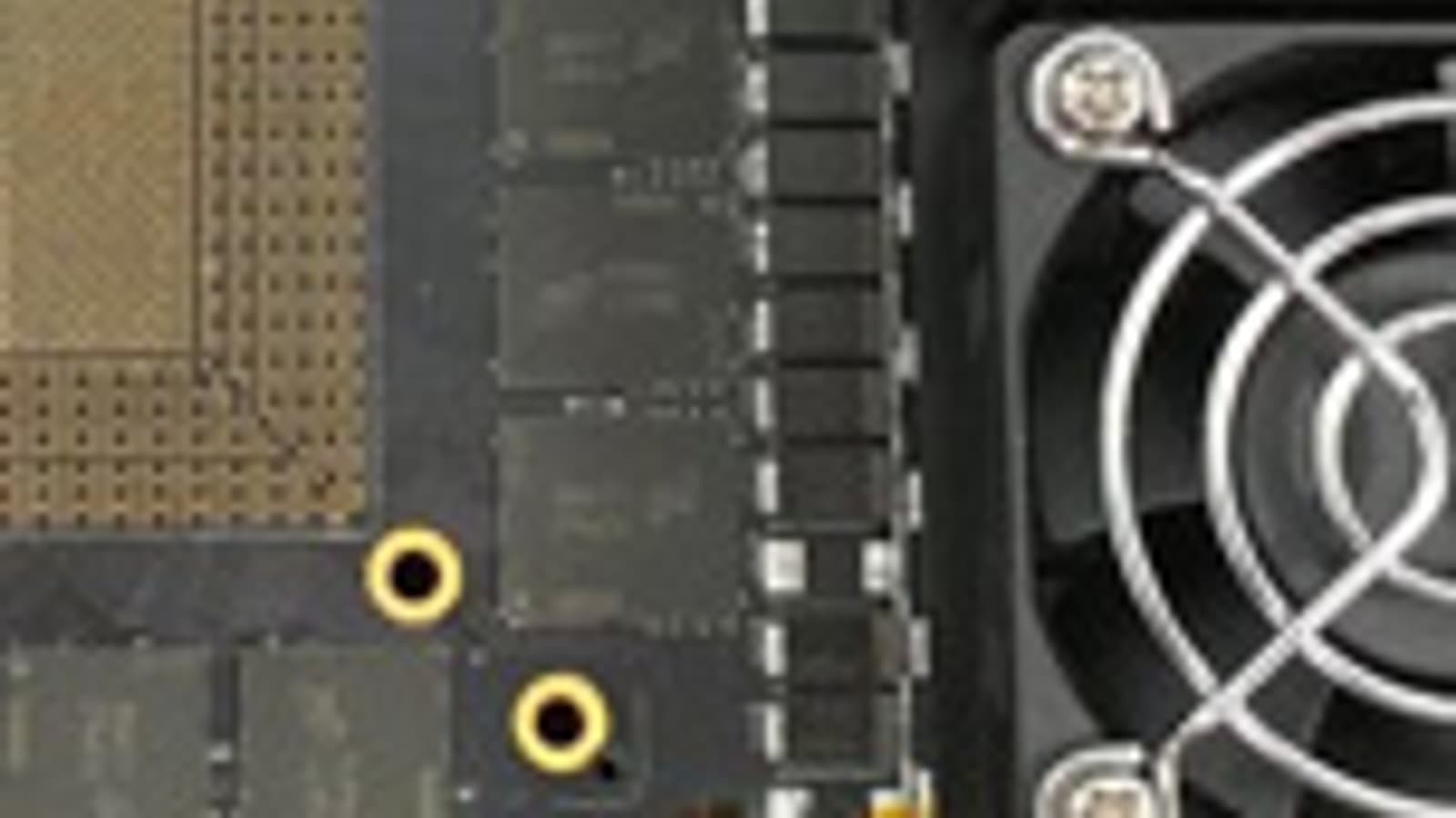 На снимке хорошо видно место для процессора, которое окружено 12 микросхемами памяти GDDR6 производства Micron. Также обращают на себя внимание компоненты внушительной подсистемы питания с тремя восьмиконтактными разъемами дополнительного питания PCIe.