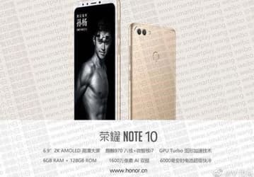 Смартфон Honor Note 10 получил экран AMOLED диагональю 6,9 дюйма разрешением 2K и АКБ емкостью 6000 мА·ч
