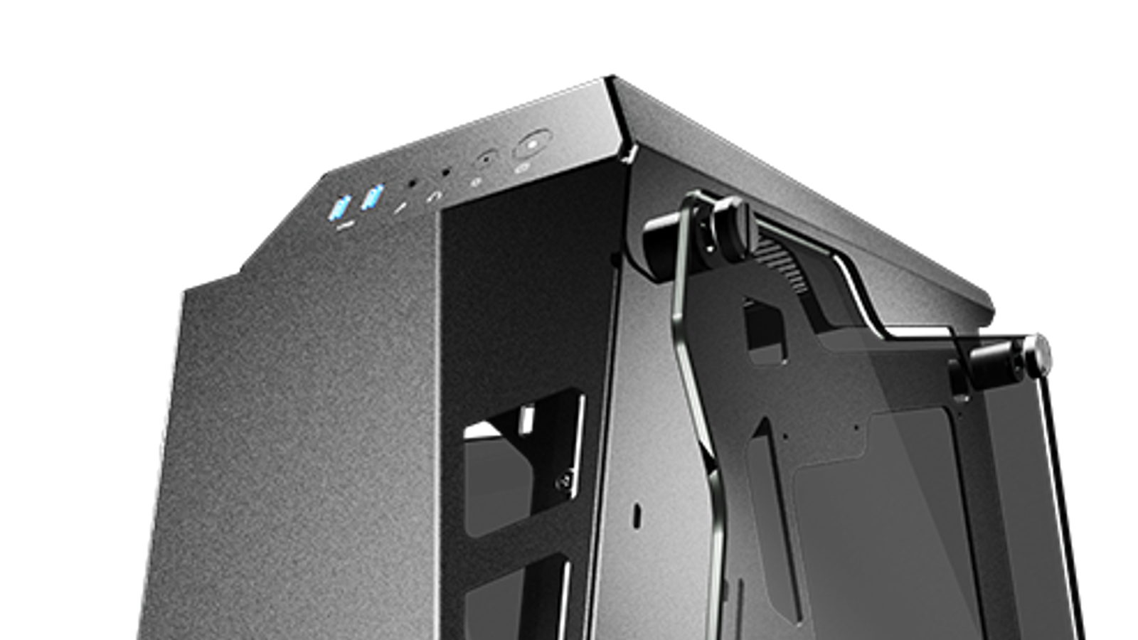 Корпус целиком изготовлен из алюминиевого сплава, и только две боковые панели изготовлены из закаленного стекла толщиной 5 мм. Они, к слову, крепятся к каркасу не вплотную, а с внушительным зазором, что должно положительно сказаться на охлаждении размещенных внутри компонентов. Кстати, совместимость с комплектующими выглядит неплохо: в корпусе можно использовать блоки питания длиной 200 мм и видеокарты длиной 350 мм, а также процессорные охладители высотой 160 мм.