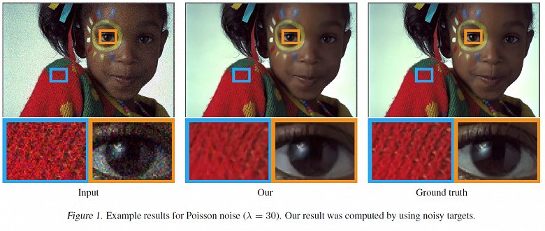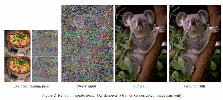 В отличие от предыдущих подобных проектов, для обучения нейросети использовались не парные изображения с шумом и без, а только изображения с шумом. По словам исследователей, такой подход повышает скорость обучения, позволяя получить результаты, не уступающие обучению на парных изображениях.