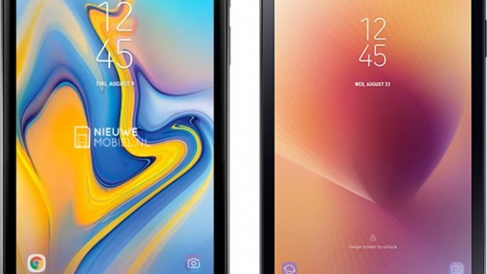 На этом изображении слева находится новая модель, а справа — прошлогодняя. Многих, наверное, порадует исчезновение с фронтальной поверхности логотипа Samsung. Также можно отметить более тонкие рамки и отсутствие физической кнопки под дисплеем. Видимо, как и старшая модель, данный планшет получит сканер радужной оболочки.