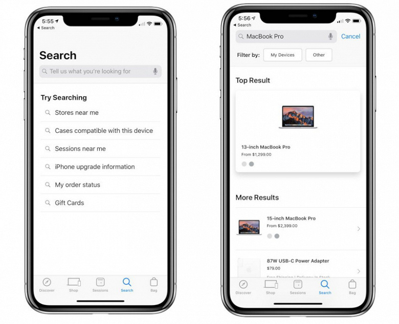 Компания Apple добавила в приложение Apple Store функцию голосового поиска. Чтобы найти ноутбук MacBook, смартфон iPhone или другие товары, достаточно нажать на значок микрофона в строке поиска и произнести вслух ключевые слова. Уточним, что новая функция доступна только на устройствах с iOS
