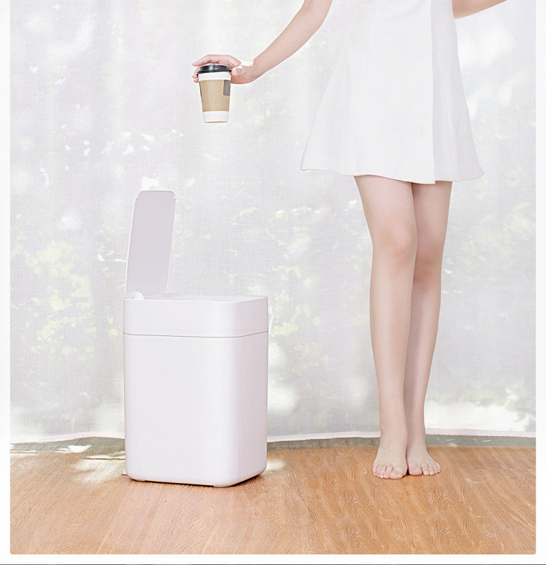 Крышка закрывается герметично, что позволяет удерживать запах внутри. Также ведро способно само определить степень наполненности, упаковать мусор и заменить мусорный пакет после удаления старого.