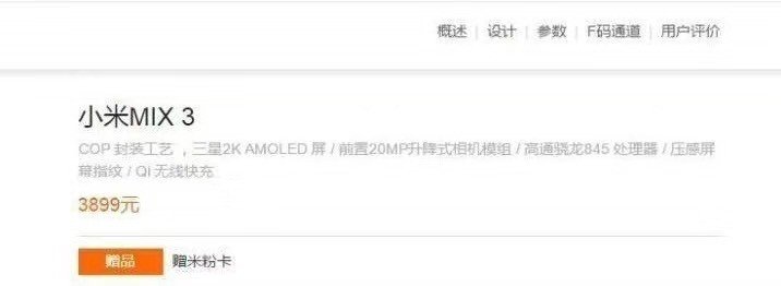Китайские источники раскопали на официальном сайте Xiaomi информацию о грядущем безрамочном смартфоне Xiaomi Mi Mix 3, а точнее перечисление его некоторых характеристик.
