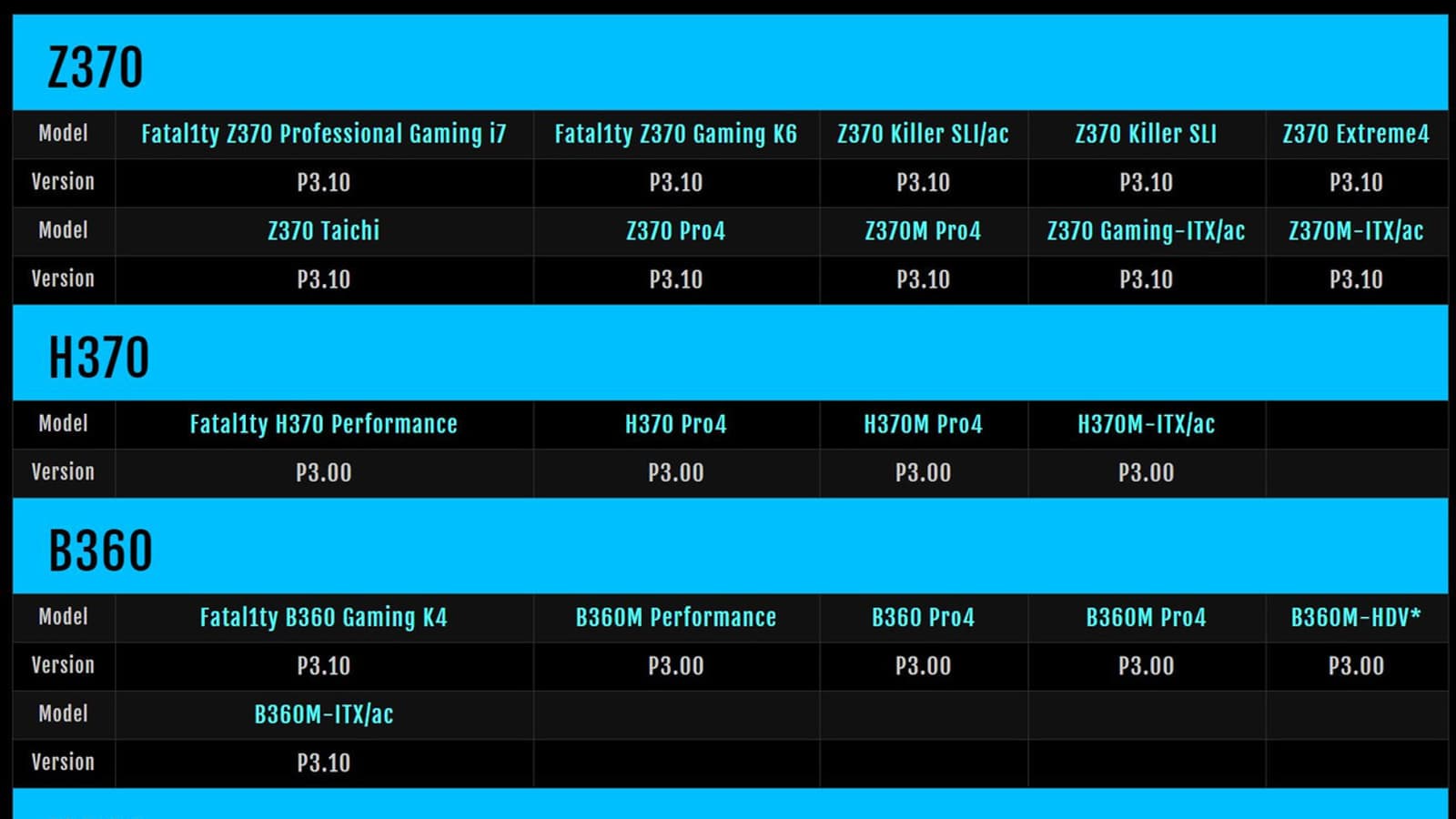 Компания выпустила обновленные версии BIOS для 28 плат, построенных на чипсетах Intel Z370, H370, B360 и H310.