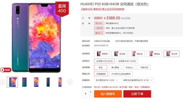 На настоящее время в Китае смартфон Huawei P20 стоит на 58 долларов дешевле, а P20 Pro — на целых 73. Соотвественно, версия Huawei P20 6+64 ГБ обойдётся в 492 доллара, а 6+128 ГБ — в 564 доллара. Huawei P20 Pro 6+64 ГБ сейчас оценен в 652 доллара, 6+128 ГБ — в 725 долларов, а топовая модель — в 841 долларов.